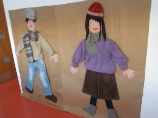 Já na sala, surgiu a proposta de representar a silhueta de duas crianças de diferentes géneros (Maria e Hugo) a partir das quais exploramos as diferenças entre feminino/masculino.
